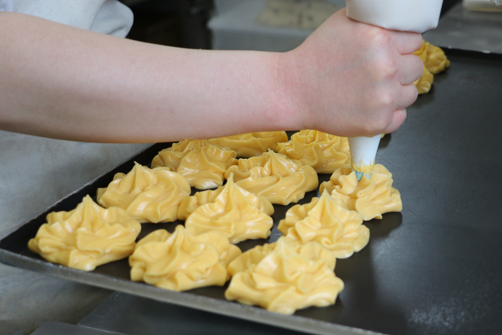 特大サイズに焼きあがるシュー生地には、岐阜県産の卵を使った濃厚カスタードと上質な生クリームをたっぷり。手にした瞬間から幸せがこぼれ出します。