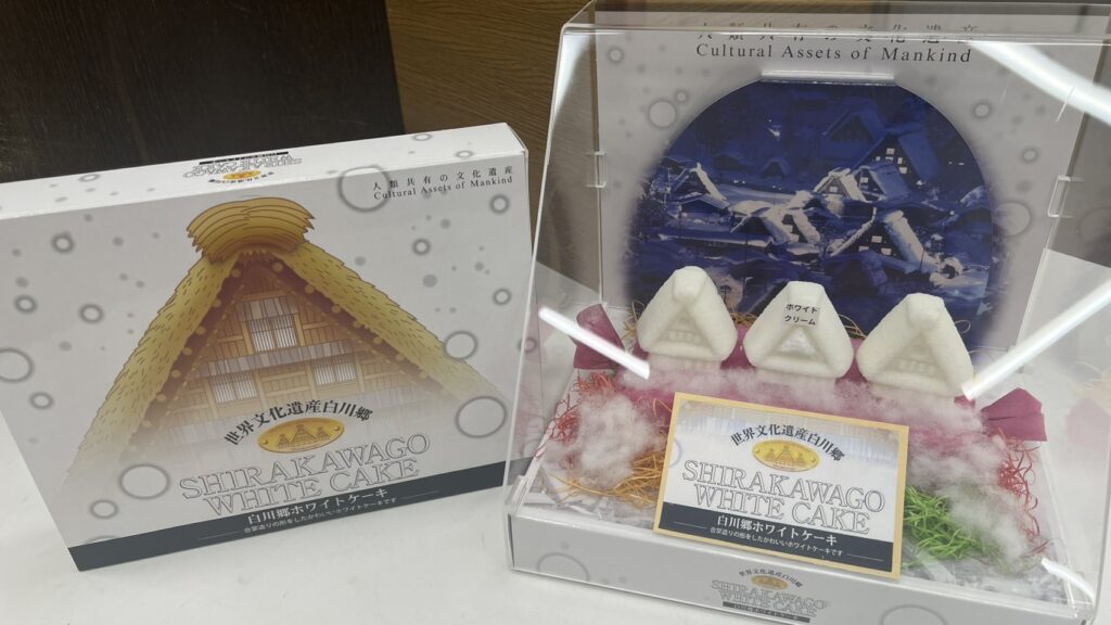 雪化粧をした白川郷の合掌作りをイメージさせる可愛らしいホワイトケーキです。ケーキの中にはホワイトクリームを使用しております。